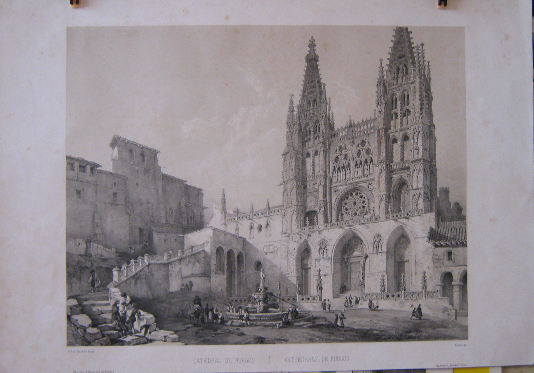 VISTA EXTERIOR DEL CRUZERO DE LA CATEDRAL DE BURGOS/VUE EXTERIEURE DU TRANSEPT DE LA CATHEDRALE DE BURGOS. Drawn by G. P. de Villa-Amil, lithographed by Mathieu, published in Paris by Lemercier circa 1840, image size 320mm x 430mm.£120.00