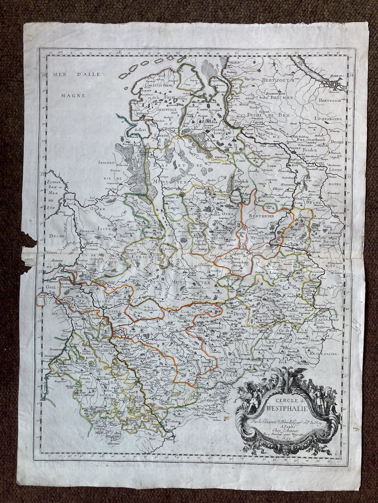 13283. Nicolas Sanson. CERCLE DE WESTPHALIE. 1659, Paris, 58cm x 43cm, hand-coloured outline. Slight worm damage. 250.00 pounds.